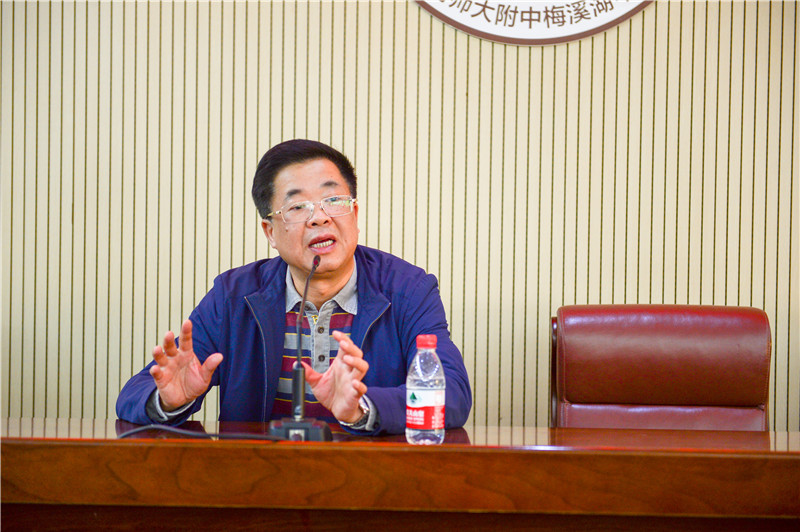 在三会议室,晏荣贵代表学校对远道而来的客人们表示热烈的欢迎,并从治校理念、管理举措、办学特色、招生生源、地理位置等方面介绍学校基本情况。作为学校管理者,他认为要坚持“不抱怨、不懈怠、不动揺、不折腾、不浮躁”的管理之道,遇到问题不抱怨,面对工作不懈怠,坚持规律不动摇,以课程、课堂和课题为中心不折腾,用书香安顿灵魂不浮躁。