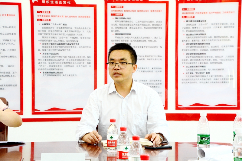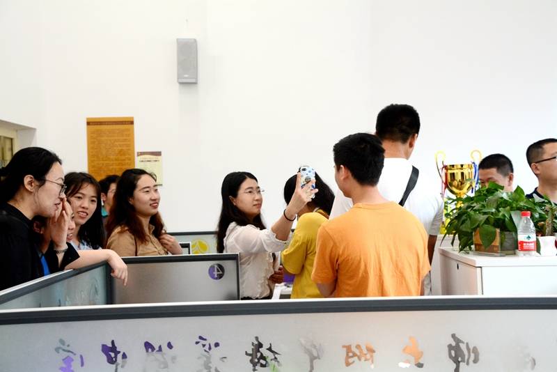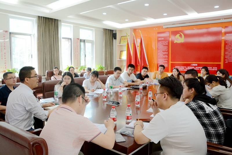 我校高三年级组长李文纲向客人们介绍了高三年级组团队组成、年级管理模式以及班主任、备课组队伍建设,环境育人,情感聚心,使命感促教育教学等具体做法。来访客人和李文纲互动交流,现场气氛热烈。