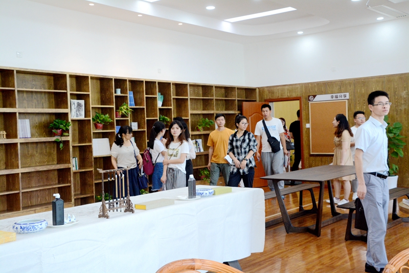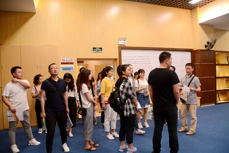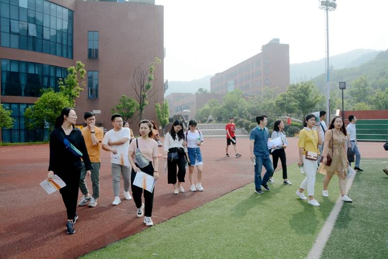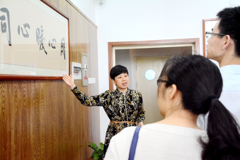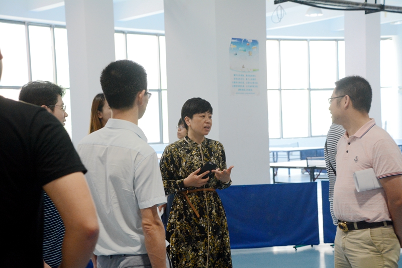 在学校领导的陪同下,客人们参观了校园、教师办公室、武术房、乒乓球室、教工之家等处。