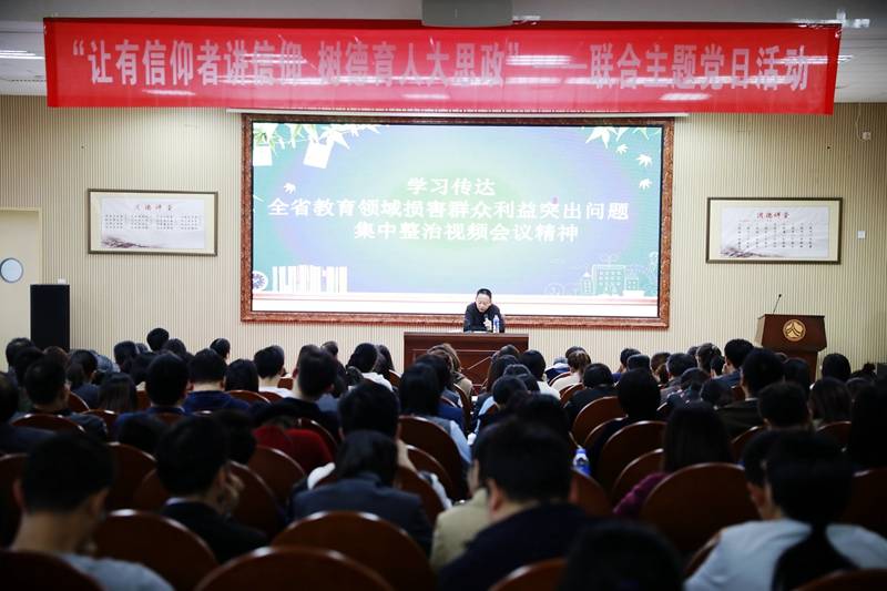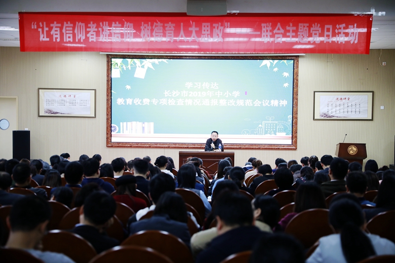 张迪平传达并带领全体教师学习了省市关于“全省教育领域损害群众利益突出问题集中整治”视频会议精神,“长沙市2019年中小学教育收费专项检查情况通报整改规范”会议精神。