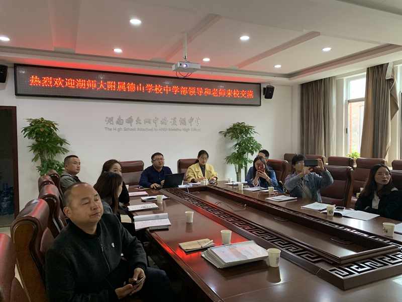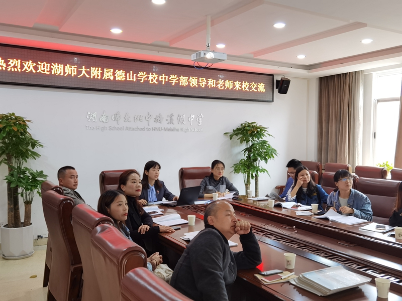 1030日,湖师大附属德山学校中学部党总支书记樊希国、中学部校长林松茂一行14人来校交流。我校校长张迪平,副校长陈益热情地接待了客人们。