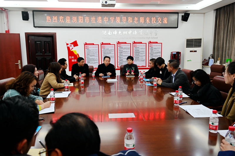 4月7日,浏阳市社港中学校长周润松、副校长潘敬明一行13人来校交流,主要了解我校中考考备考情况。我校校长张迪平,党委书记钟慧莉,副校长胡惠、张志热情接待。