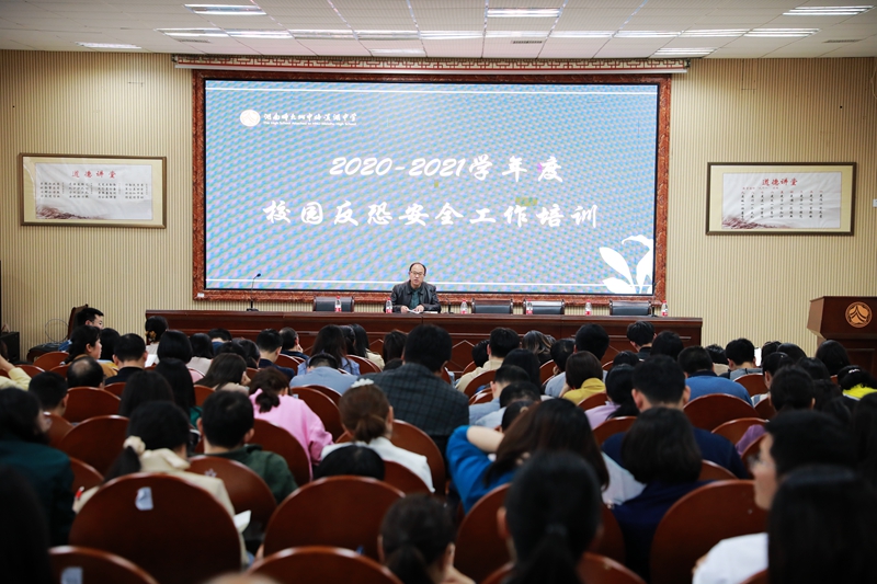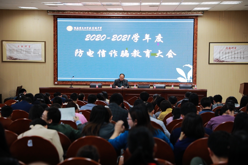 胡惠做了校园反恐安全工作和防电信诈骗培训。胡惠强调,针对校园反恐,学校在学生进校后要实施封闭管理,定人定岗定责,做好人防、物防、技防,对学生安全问题,每位教职工都要坚持首遇制原则。针对电信网络诈骗,他强调,网络诈骗千万种,我不转账是根本,任他骗术怎么变,加强防范是关键。另外,他对学校汛期安全工作做了布置。