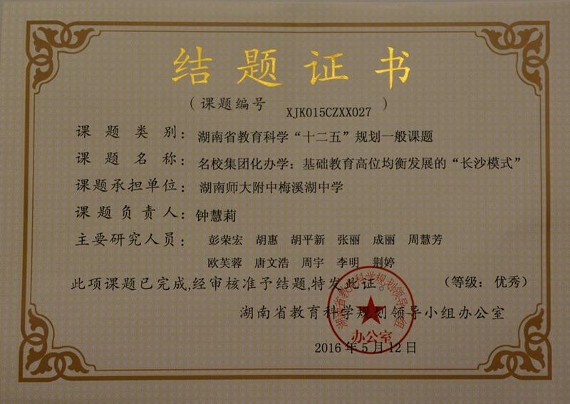 我校主持研究的湖南省教育科学“十二五”规划课题成功结题并被评为优秀