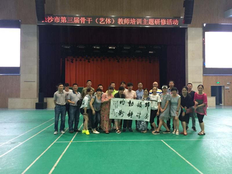 7月18日下午,长沙市第三届艺体骨干教师培训主题研修活动在我校举行。长沙教育学院工会主席刘桢、艺体骨干教师培训班班主任刘少良带领30多位学员参加活动。我校保卫处副主任兼学工处副主任胡海军和体育组组长曾仲明等老师精心组织此次活动。