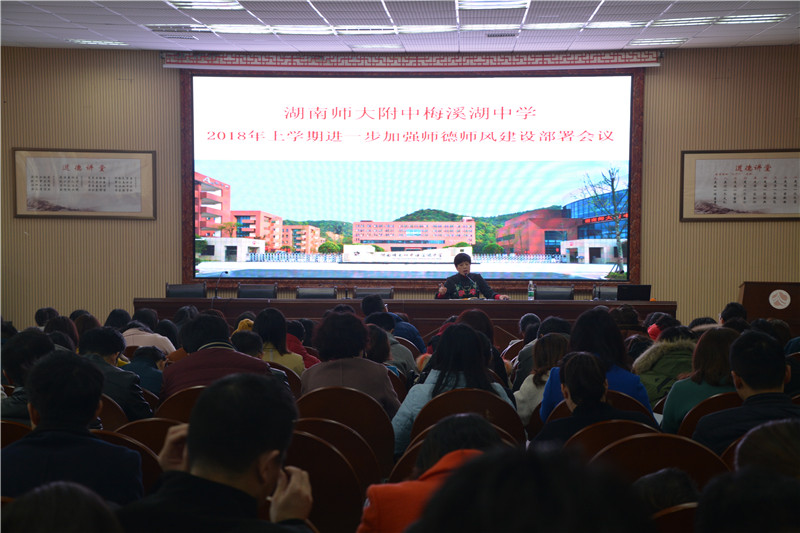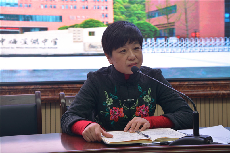 紧接着,四位老师分专题作了经验分享。王武辉老师作为青年教师、班主任代表,作了题为“五年师梅情,四载修心路”的发言。发言中,他将从事教育事业的初心,初上讲台的磨炼,教育教学中的思索以及对未来的展望娓娓道来。他是学生的“护苗人”,真诚而诗意的讲述使全体教师为之动容。李文纲老师作为高三年级组长,分享了两年多来年级组建设的经验。他指出,年级组作为一个团体,需要凝聚教师、学生、家长的智慧与力量,团结一致、众志成城。高三年级组用热情与实干取得了不俗成绩,同时也非常期待今年高考大捷。吴菲老师则分享了数学教研组建设经验:数学教研组以“长沙市张宇数学名师工作室”为理论学习与对外交流阵地,结合集体备课、听课研讨,做到了教学精细化、趣味化。胡正凯老师作为七年级党支部书记,分享了支部工作经验。她认为有计划、重保存、为实用、勇创新是高效而有序做好支部工作的法宝。