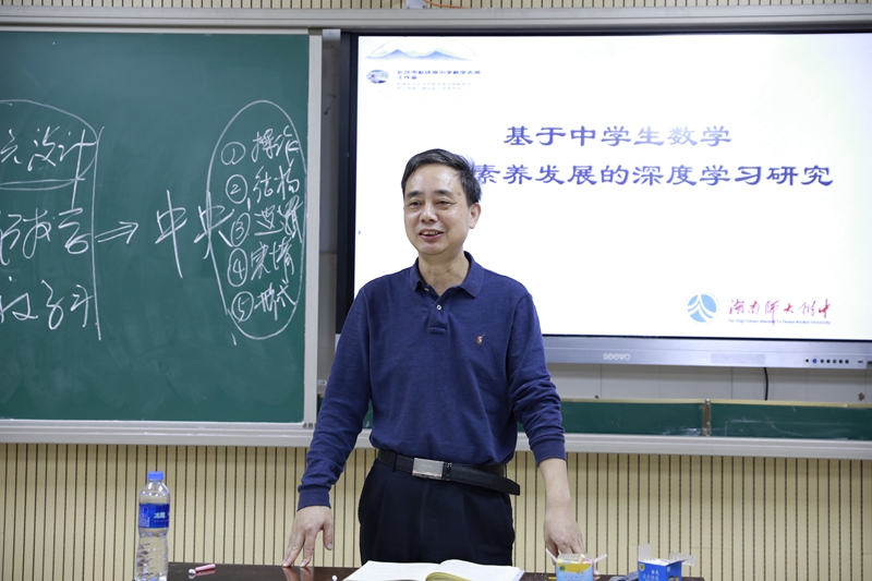 评课环节中,两位授课教师分别介绍了自己的课堂设计。工作室名师袁拥军戴飒英,湖南师大附中七年级组长、我校首任初中数学教研组长吴菲,湖南师大附中名师陆稳做了精彩的点评。
