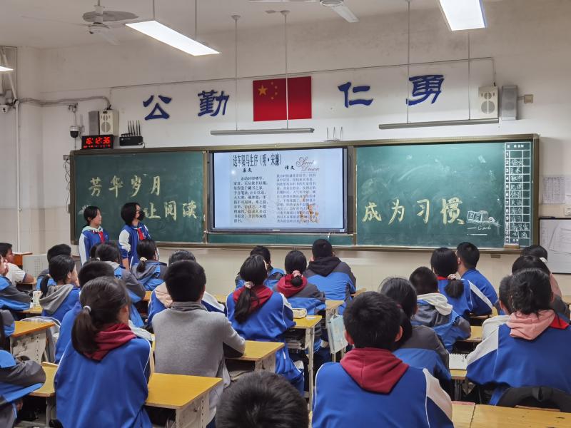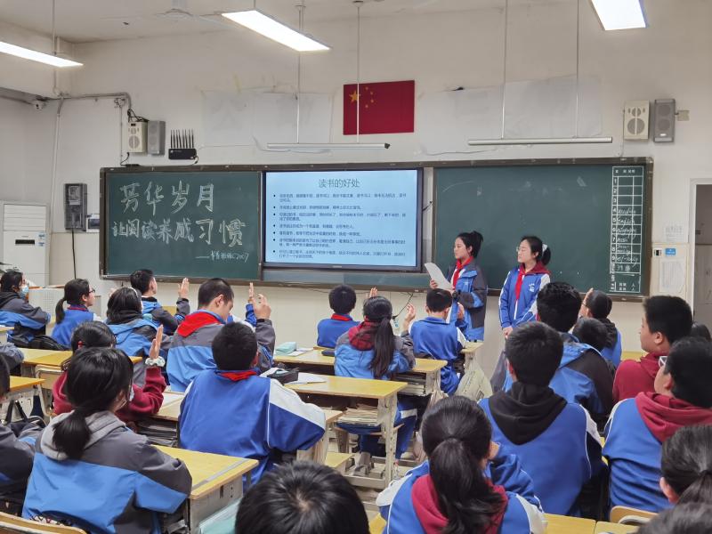 国旗下讲话时间,高中语文教研组长李泉向学生介绍了读书的好处和实用的读书方法,让学生更深刻地理解了阅读。她号召全校师生加入读书队伍,在阅读中,遇见智慧与阳光,寻觅更美好的自己。