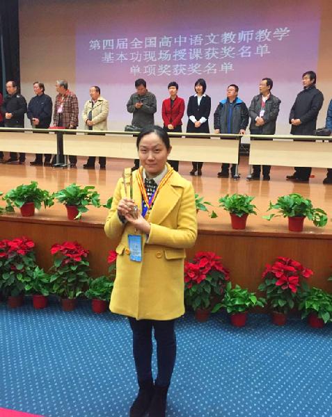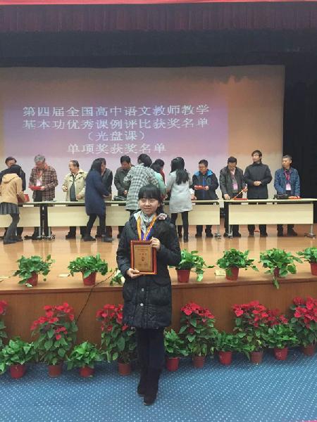 11月22至26日,第四届全国高中语文教师教学基本功展评暨教学观摩研讨会在江苏苏州举行。我校语文组马晴晴老师作为全省唯一现场赛课参赛代表荣获一等奖!我校语文组王静老师荣获光盘课比赛和论文评比一等奖!特向全校师生报喜!