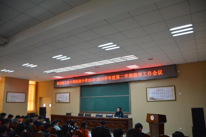 2月20日下午,学校2015-2016年学年度第二学期教学工作会议在教学楼三楼道德讲堂召开。副校长张迪平、张志,教务处主任梁平,党办主任兼工会副主席张丽,学工处主任胡田超,督导室主任胡平新,团委书记罗煦洁,教科室副主任李湘黔,保卫处副主任兼学工处副主任胡海军等出席会议。全体专任教师、教务处干事、学工处干事参加了会议。会议由张迪平主持。