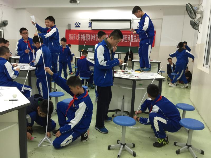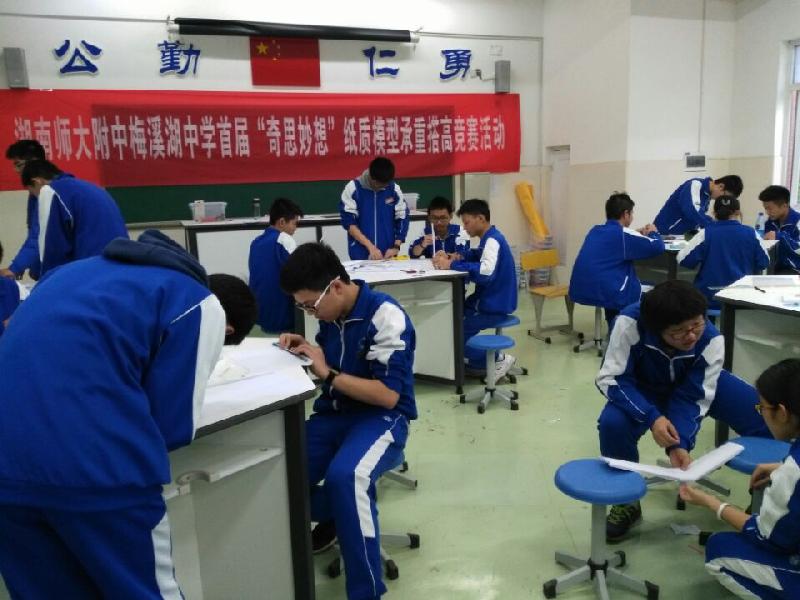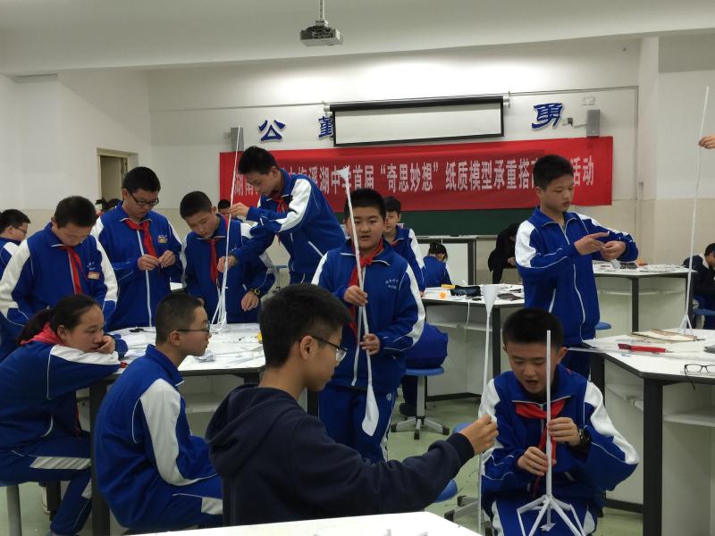 4月7-8日,我校首届“奇思妙想”纸质模型承重搭高竞赛活动在科技楼2楼教室举行。竞赛分为初中组和高中组,由各班选派4名学生参赛,通用技术组老师担任评委。