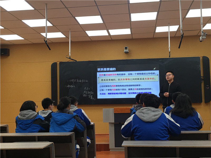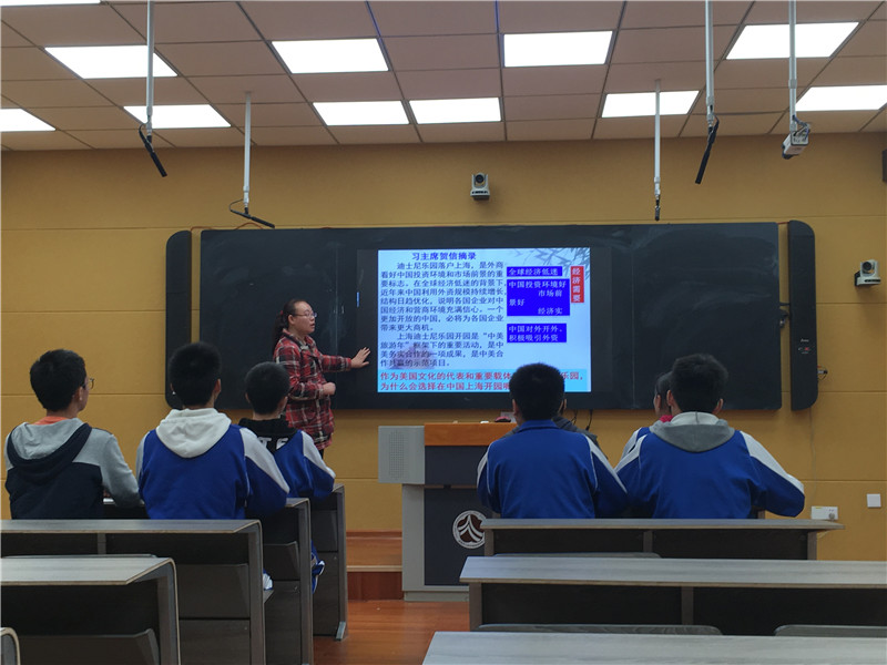 随后,黄治清作出了教学点评。他充分肯定了老师们的教学风采,认为我校政治组是一支非常有战斗力的队伍,老师们个个功底扎实,教学设计新颖独特。同时,也指出了老师们教学中值得改进的方面,最后就片段教学应该注意的问题,从取材、举例、设问、挖掘教材、课堂生成等角度为老师们进行了专业培训。