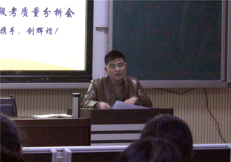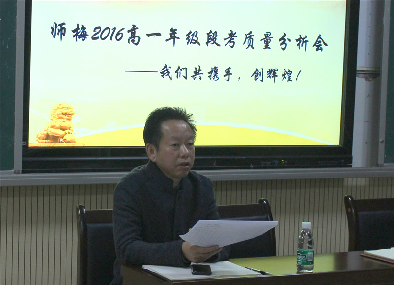 张迪平仔细查看和分析了高一年级段考成绩数据,并对高一年级全体老师提出了四点要求:一是开发学生非智力因素;二是落实教学常规;三是智慧工作,加强校际交流,充分利用附中本部资源,研究考标和真题;四是追求高效课堂。