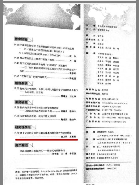 我校地理老师指导学生在国家级刊物上发表论文一篇