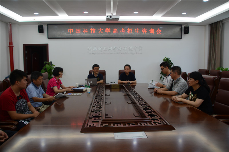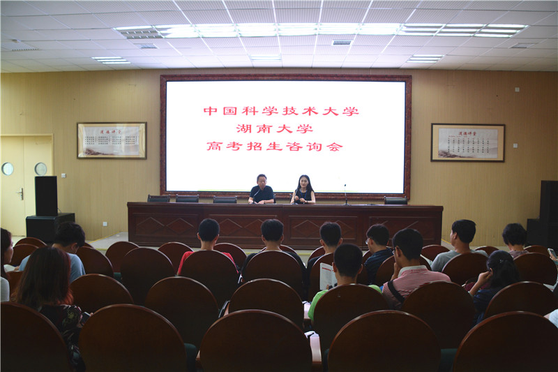 6月26日下午,中国科技大学和湖南大学高考招生组来我校进行宣讲。有意报考的学生偕同家长齐聚招生咨询会现场,会议由副校长张迪平主持。