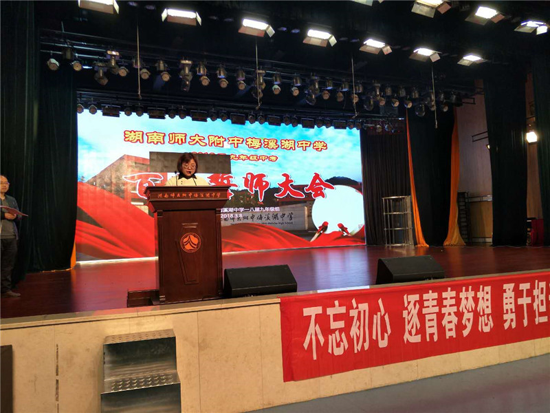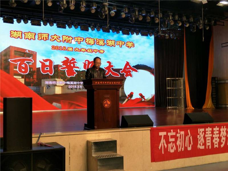 最后,杨庆芬作总结发言。他引用清代袁枚的小诗《苔》:白日不到处,青春恰自来。苔花如米小,也学牡丹开。勉励全体九年级学子即使当下平凡,百日奋斗之后也可像牡丹花一样盛放。“三年砺剑今日策马闯雄关,一朝试锋六月扬眉凯歌旋”, 2018年师梅中考必将再上新台阶,再创新辉煌!