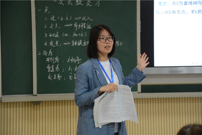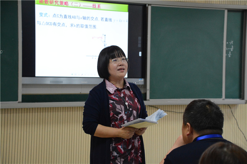 我校初中数学教研组长吴菲上了一堂“一次函数复习”的展示课。她从函数的点、线、面三方面展开,引导学生进行思考,别开生面。长沙市张宇中学数学名师工作室首席名师、我校高中数学教研组长张宇给出了充分肯定:执教老师教学角度新颖,有感染力,很好地培养了学生的创造力将零散的知识点模块化,使学生的知识结构系统化。龙山县老师也纷纷给予了点评,高度评价了吴菲的综合能力和学生的学科素养。吴菲本人指出课堂是为学生服务的,认为每堂课最重要的是老师给学生留下了什么。她还详细介绍了我校初中数学的教学方法,并与龙山县的老师们展开了深入讨论