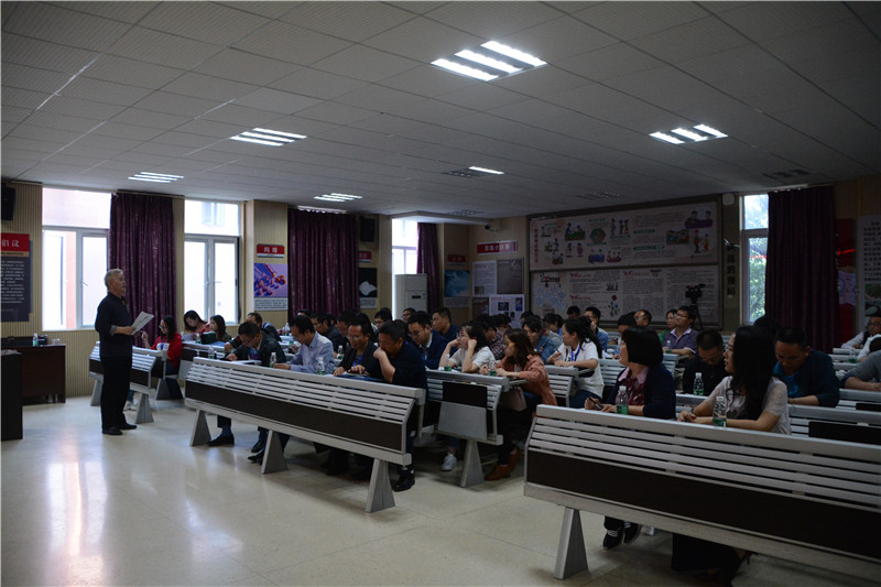 4月19日下午,长沙市对口支援-龙山县初中数学骨干教师专项培训班学员来校访问交流。我校教务处主任张磊出席会议并致欢迎词,数学教研组老师参加交流活动。