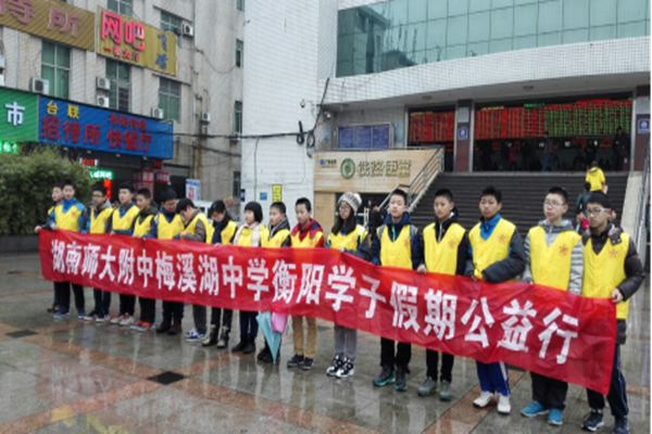 今年的冬天,是温暖的。而这个暖冬中的寒假,对于初1401班的学生来说,也是一个难忘又温暖的寒假!在师大梅溪湖校团委的引导下,初1401班的孩子们以自己的地区为小组,组织了一支支小分队,进行了形式多样的寒假实践!“温暖回乡人”、“关注留守儿童”、“扶组贫困家庭”、“环保小卫士”一项活动温暖着他人,也温暖着自己…….。 谁说“读书就不闻窗外事”,我们师大梅溪湖的学子读书同时不忘关注社会!就让我们跟随图片一起来感受一下实践小分队朝气蓬勃地爱心传递的步伐吧!