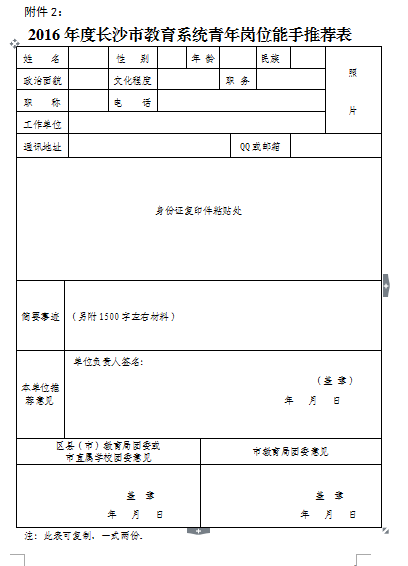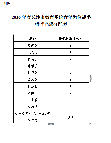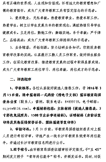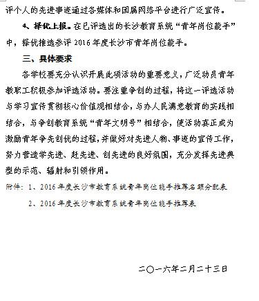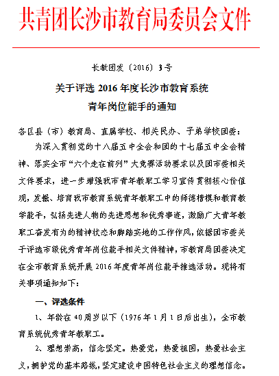 关于评选2016年度长沙市教育系统青年岗位能手的通知