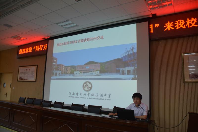 7月4日上午,根据团省委通知,由香港教育局组织的“同行万里——香港高中学生内地交流计划系列团”来我校参观交流。校长彭荣宏、校办主任谭伟、学工处主任胡田超、教科室主任李湘黔、团委书记罗煦洁热情接待了客人一行。