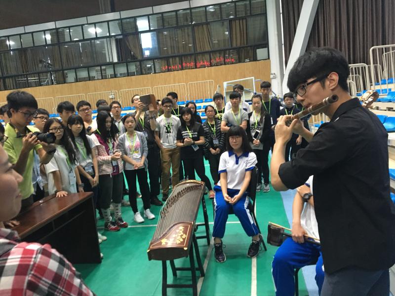 接着,153名师生分区域参加了我校文化艺术交流会。会上,我校书法社、民乐社、舞蹈社和武术社的学生们精心准备的乐器演奏与舞蹈表演等节目展现了中原学子热情向上、多才多艺的精神面貌,赢得现场阵阵掌声,也迅速拉近了两岸师生的距离。