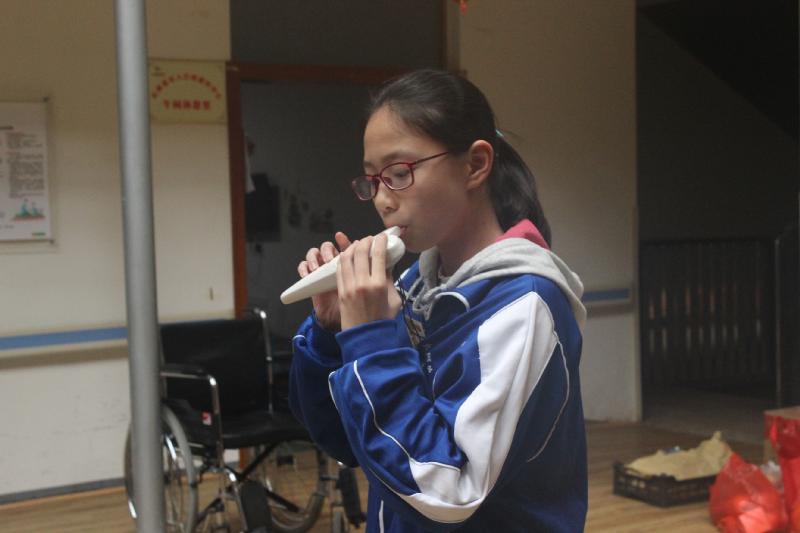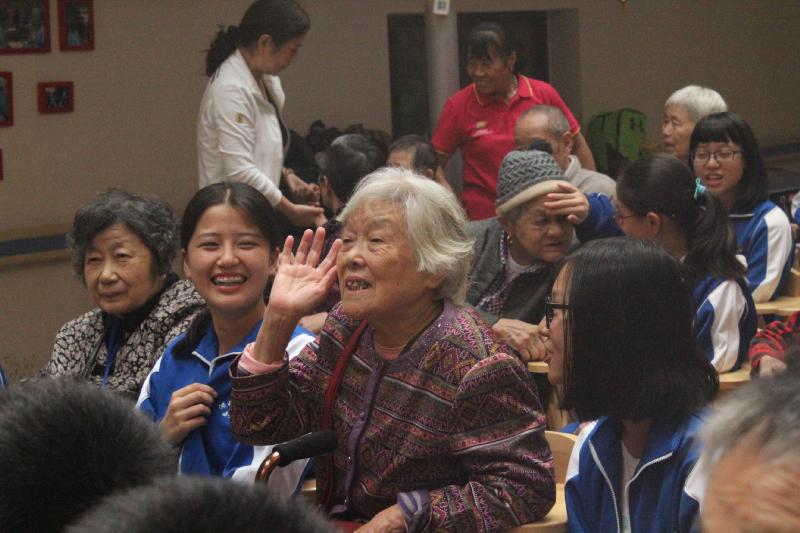 活动开始,在红枫敬老院院长的带领下,志愿者们将老人们带到活动场地,为他们献上了精彩纷呈的节目表演。15名志愿者们各有本领,不仅有陶笛独奏、傣族舞蹈、朗诵,更是邀请了部分老人与志愿者们一同合唱红歌,场面格外热闹。演出过程中,我校团委书记罗煦洁代表学校向老人们表达了最诚挚的敬意与祝福,同时号召同学们多多参与志愿者活动。同学们牵着爷爷奶奶的手一起聊天、一起欢笑,亲密无间。