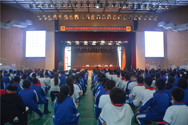 5月19日下午,学校2016-2017学年度评优表彰大会在体艺馆隆重举行。党书记钟慧莉,副校长胡惠、张志,教务处主任梁平,学工处主任胡田超,信息中心副主任兼学工处副主任黄坚,高一年级组长王景龙,七年级组长成丽出席会议,高一年级和七年级全体学生参加大会。会议由胡田超主持。