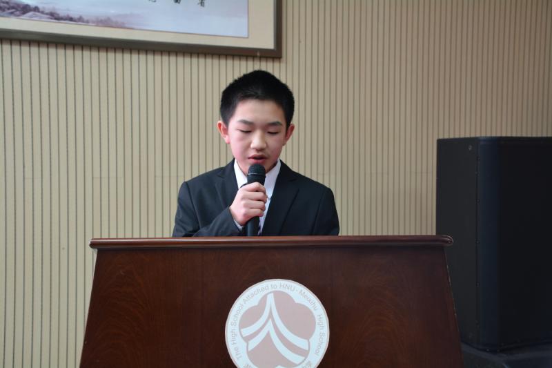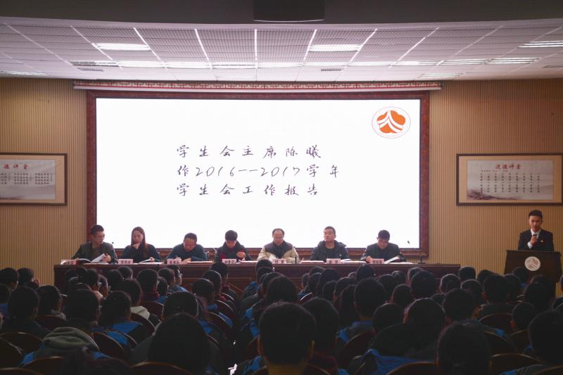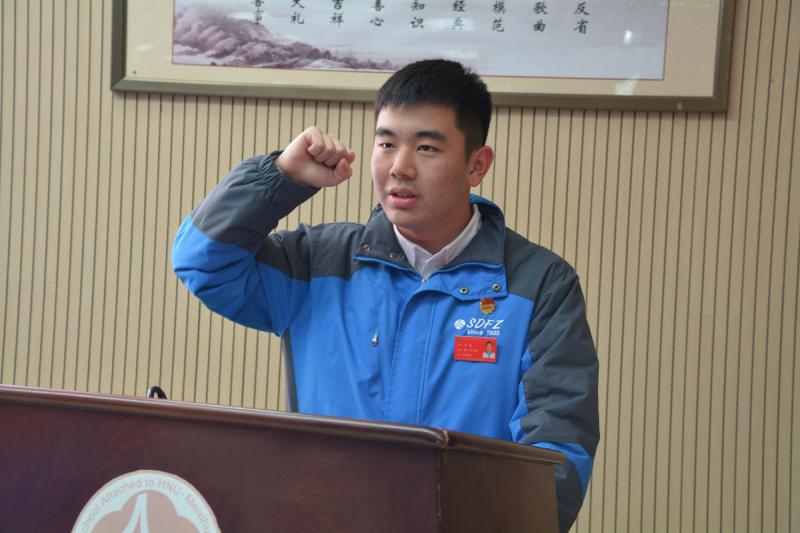 大会在国歌和校歌庄严的声音中拉开了帷幕。首先,由第三届校团委副书记李京同学、学生会高中部主席陈曦同学、校少先队大队长彭奥翔同学做2016-2017学年度工作报告。李京简明扼要地概括了团委在过去一年里各部门日常工作的落实情况以及志愿活动的开展情况,将积极迎接工作、书写具有师梅特色的光辉团委篇章的信念传达到每一个人心里。校学生会高中部主席陈曦同学在报告指明,上个学年度,学生会致力于深化制度改革,落实常规管理;开展主题活动,丰富校园生活。在对上学期工作进行肯定的同时也指出需改进的地方,并对新校干提出几点新的期望,为新一届校干日后工作的开展指明了一条清晰鲜明的道路。校少先队大队长彭奥翔同学总结了少委会在过去一年中开展的活动以及取得的成绩,如少委常规的管理,主题教育活动和少委会换届工作的开展等,并对新一届少委会的学生干部予以肯定。