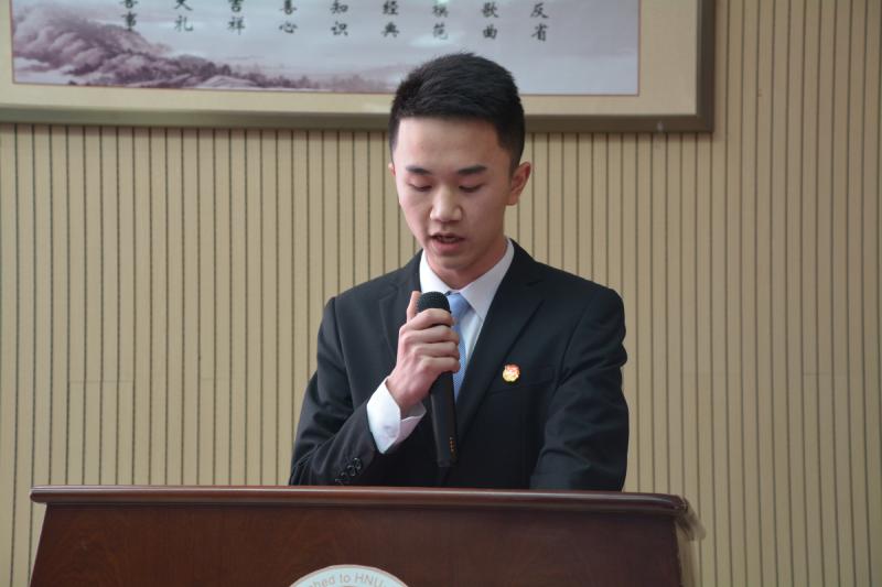 最后,张志回首2016-2017学年度,对16届校干的工作给予了肯定与感谢,展望2017-2018学年度,对17届新校干表示祝贺并提出了要求,希望树立远大理想,做高品位师梅人、践行社会主义核心价值观,凝聚正能量、传递正能量、增强民主意识,提高民主素质、学会自我管理,增强服务本领。他指出管理是服务,当干部是服务。准备当学生干部,就要时刻准备服务,为同学服务,为老师服务,为学校发展服务,为社会进步服务,同时也希望新一届全体学生干部为学校的学生工作带来新的生机和活力,使我校学生工作迈上一个新的台阶,共创师梅新辉煌。