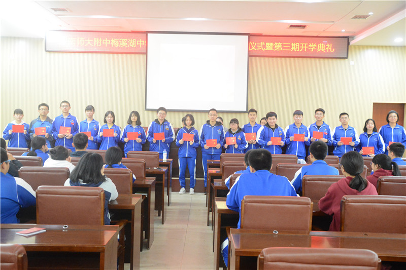 典礼在庄严的国歌声中开幕。第二期学员代表邓润同发言,主席台领导和嘉宾为第二期56位结业学员颁发结业证书。随后,刘女兢宣读了第三期青年业余党校学员名单,张丽宣读了青年业余党校纪律。第三期学员代表张悦代表全体新学员进行表态发言。