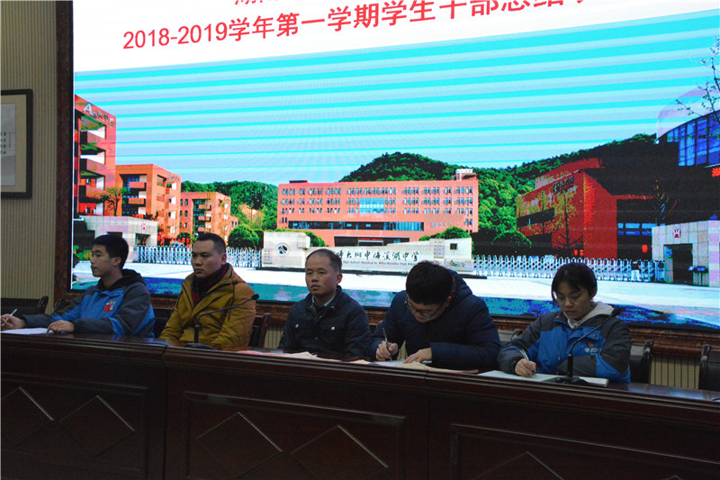 1月10日,我校2018-2019学年第一学期校级学生干部总结表彰大会在道德讲堂召开。学工处主任王超、教师朱耀汉和少先队大队辅导员汪鹏出席本次会议。会议由学生会主席高1709班吴典典主持,全体校级学生干部参加。