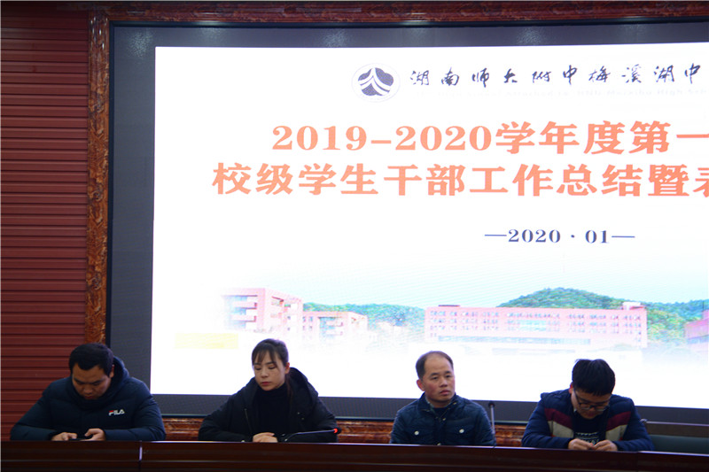 1月10日,我校2019-2020学年度第一学期校级学生干部工作总结暨表彰会在乐善讲堂隆重举行。学工处主任王超、团委书记罗煦洁、少先队辅导员汪鹏、学工处朱耀汉老师等嘉宾在主席台就坐,全体校级学生干部出席会议。会议由学生会副主席杜鹏宇主持。
