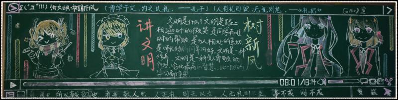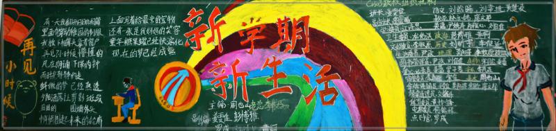 比赛中,学生积极主动,创意新颖,从各个角度形象生动地诠释主题。高中部黑板报色彩丰富、形式多样,有英文版、绘画版等;初中部黑板报字迹工整,主题突出,插图标新立异,彰显了同学们的创新精神。