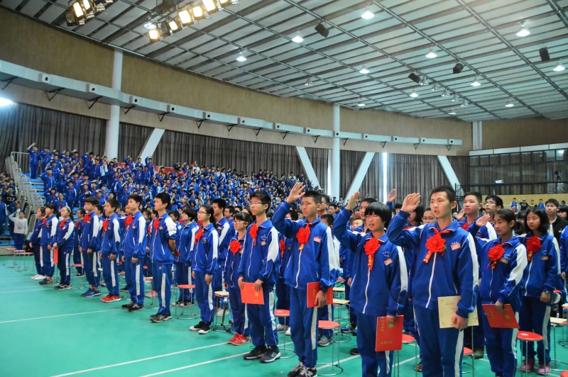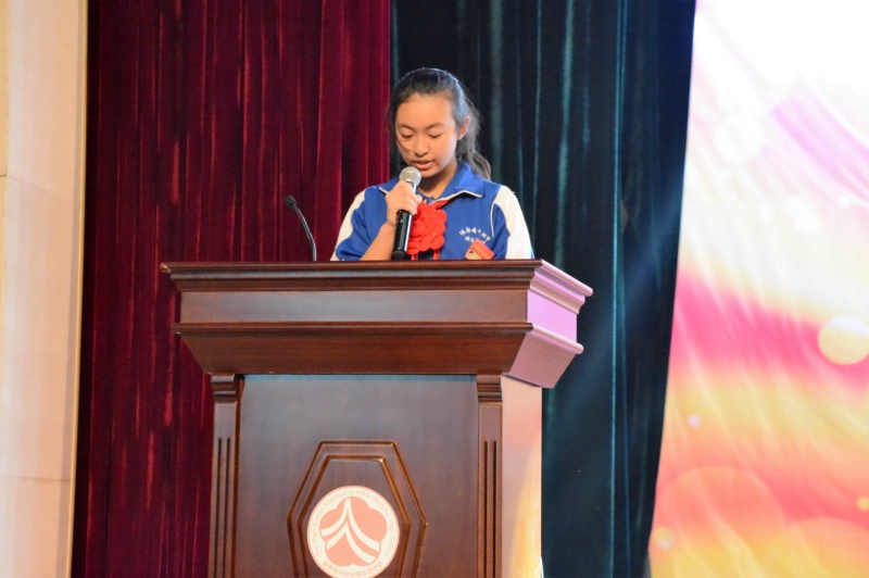 大会在庄严的国歌中拉开帷幕。首先,屈雪辉宣读了学校的表彰决定和受表彰集体和个人名单。本次大会共表彰2015-2016学年度先进班级、优秀团支部、优秀少先队中队36个,校三好学生、优秀干部和各类单项积极分子,共计2706人次。学校领导和嘉宾分别为获奖班级和个人颁奖,现场掌声雷动,气氛热烈。先进班级代表罗涵睿同学、优秀团支部代表罗子懿同学、三好学生代表戴依晗同学、优秀学生干部代表彭博雅同学分别在大会上发言。