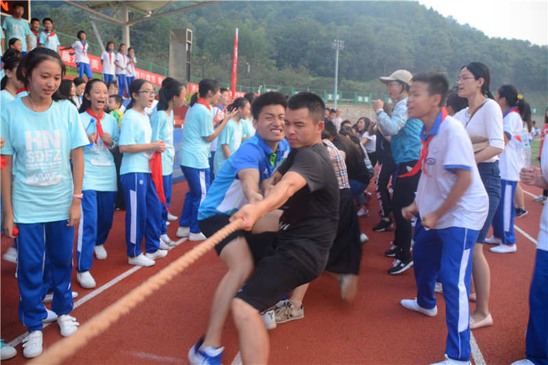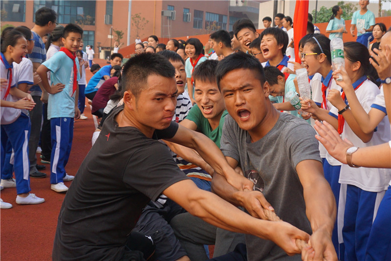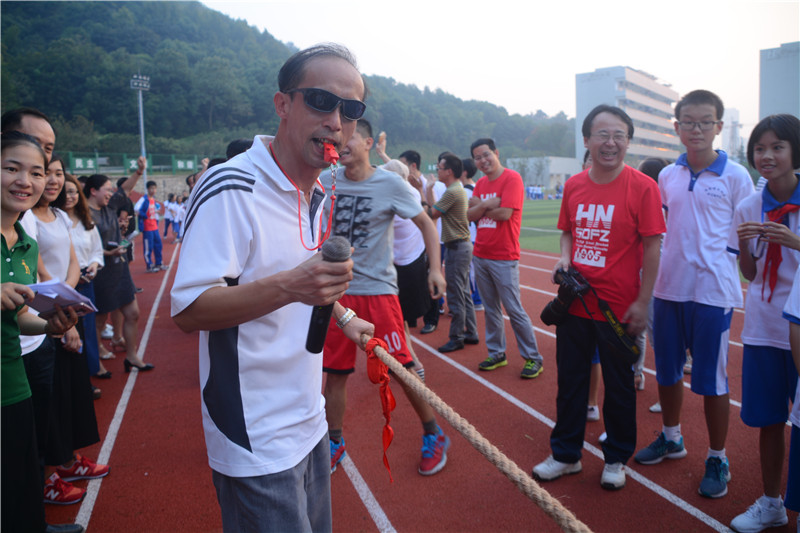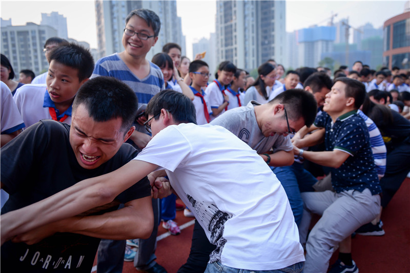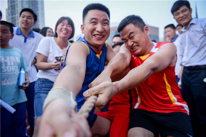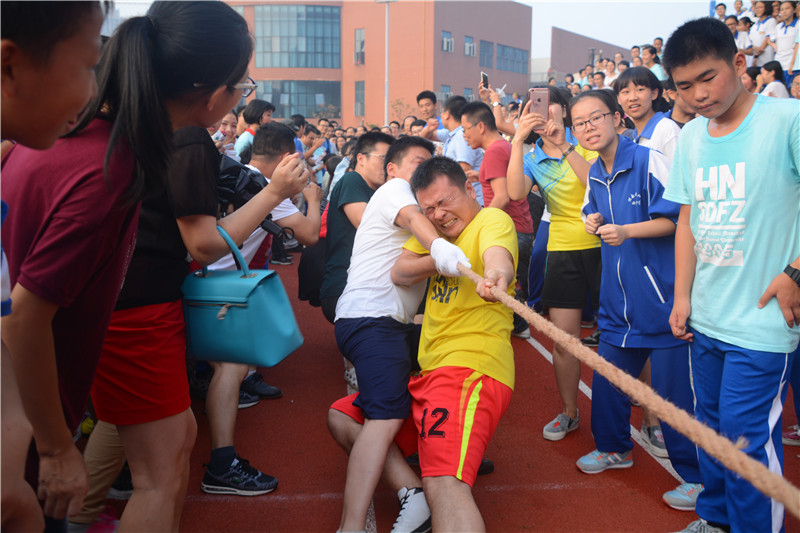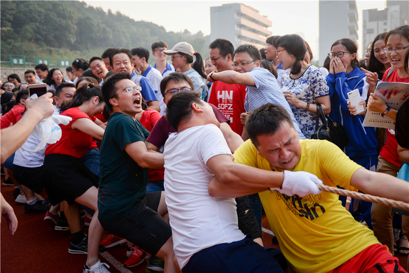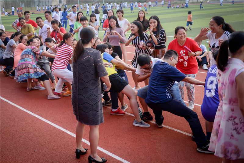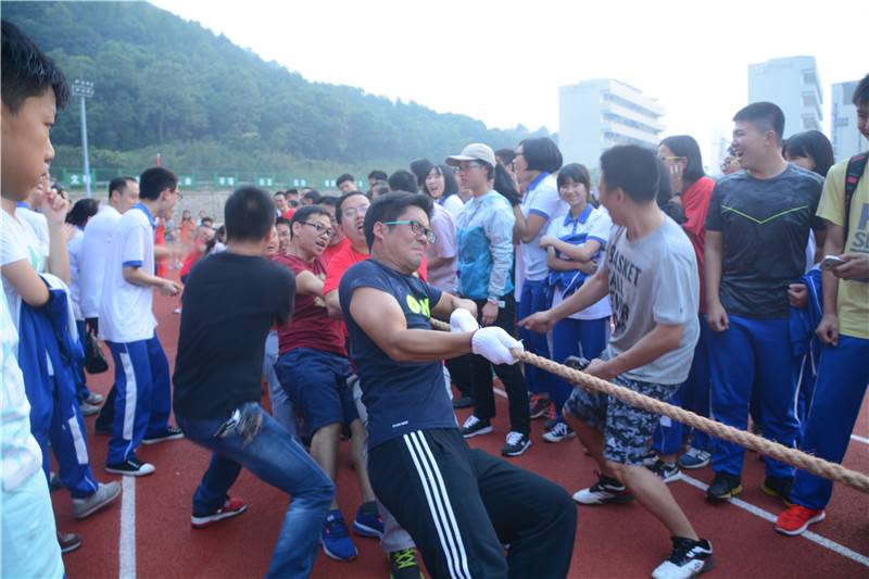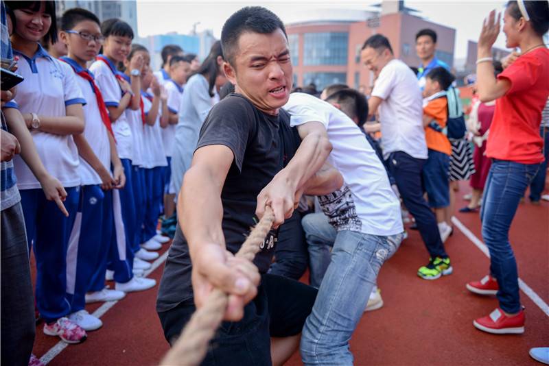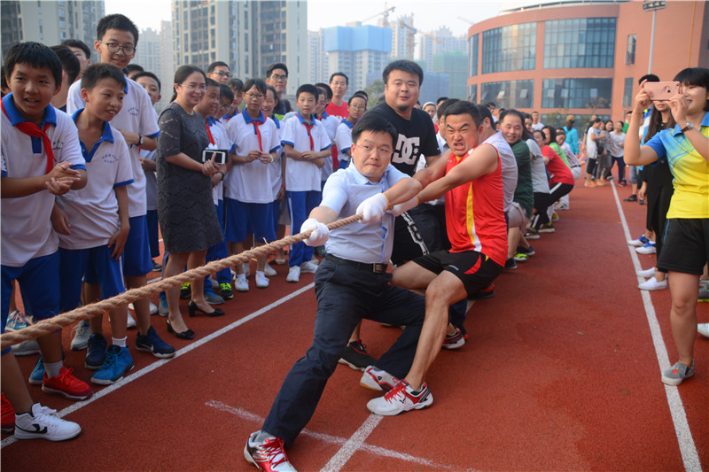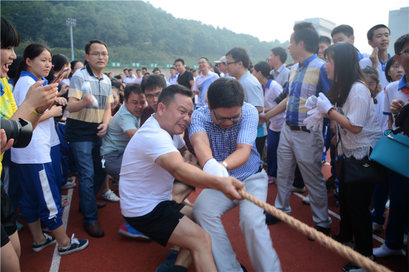 9月26日下午,我校第三届校园体育节教职工拔河比赛在田径场举行。七支比赛队伍分别由行政工会组和初、高中六个年级工会组组成。为了比赛公平公正,比赛以单循环方式进行,随着裁判老师曾仲明的一声哨响,拔河比赛正式开始。比赛中,每个队的队员都心往一处想、劲往一处使,齐心协力、不甘落后,其他师生们则在一旁加油打气、呐喊助威。这一场景充分体现出我校教职工们积极向上的活力和出色的团队合作精神,整个田径场欢声笑语,成为了欢乐的海洋。经过激烈角逐,最终行政工会组和初三工会组分别斩获冠亚军。
