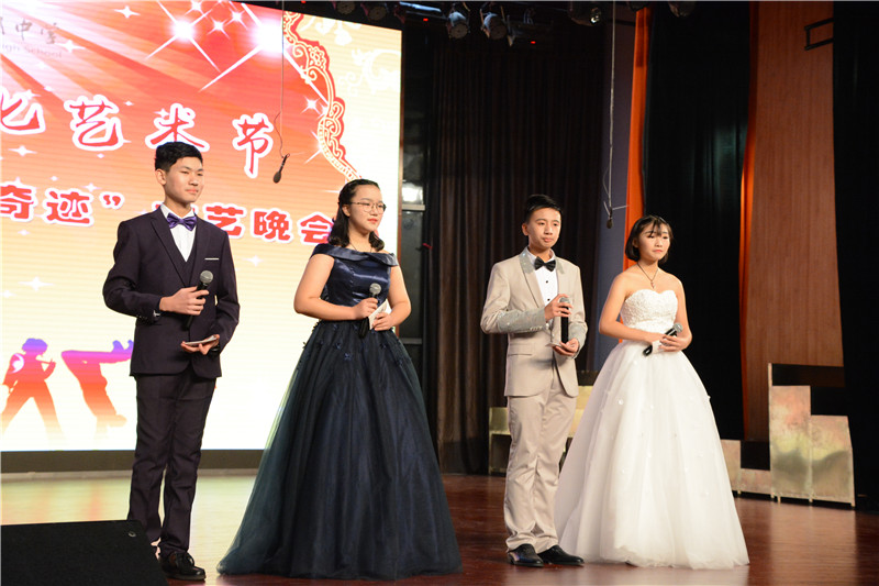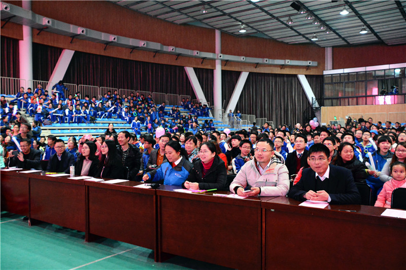 12月12日晚,我校第三届校园文化艺术节九年级“红心向党·歌声嘹亮”校园十佳歌手(组合)大赛在体艺馆三楼隆重举行。九年级支部联点领导、党办主任张丽,学工处主任胡田超、信息中心副主任兼学工处副主任黄坚、九年级年级组长吴菲出席活动。本次比赛由初1401班吴静怡、初1405班何成至、初1408班周子昱及初1414班卢佳依主持。