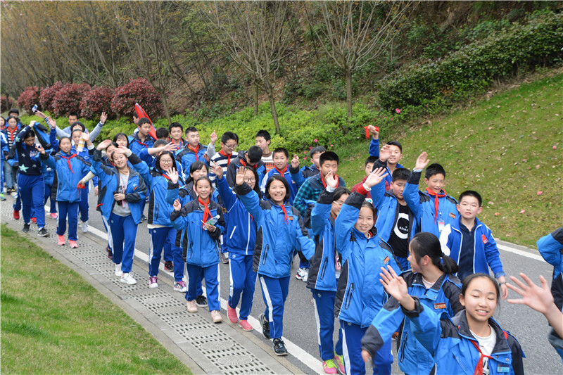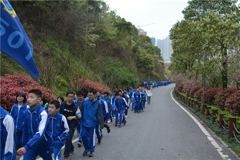 3月27日,一扫连日的阴霾,太阳露出了久违的笑脸。聚彩彩票每周一次的登桃花岭活动继续进行。这一次西藏来校挂职的四位老师与初一、初二全体学生一起登桃花岭,感受春天的美好。校长晏荣贵、副校长张志、校办主任谭伟也一同登山,共赏美景。