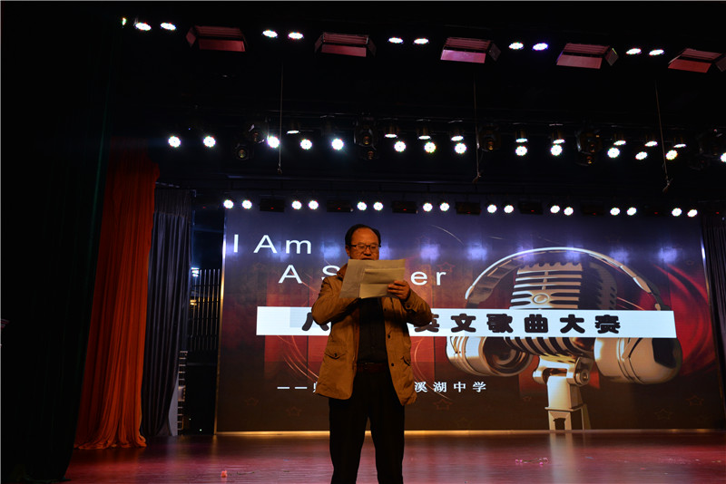 (通讯员:刘晟颖) 4月12日晚,学校体艺馆三楼歌声悠扬、华灯璀璨,由八年级英语备课组精心组织的“I am a singer”英语歌曲比赛在这里隆重上演。副校长胡惠、总务处副主任彭伟、少先大队辅导员兼青促会会长郭金石、八年级年级组长杨庆芬、高中部英语教研组组长方煦、初中部英语教研组组长兼八年级党支部书记刘晟颖及柳诗扬、彭傲老师出席活动并担任比赛评委,八年级全体英语老师与该年级学生同台竞演、共展风采,给大家带来了一场别开生面的视听觉盛宴,1512班彭誉杰演唱Tow Infinitely and Beyond摘得桂冠,并受邀参加学校社团节文艺展演。