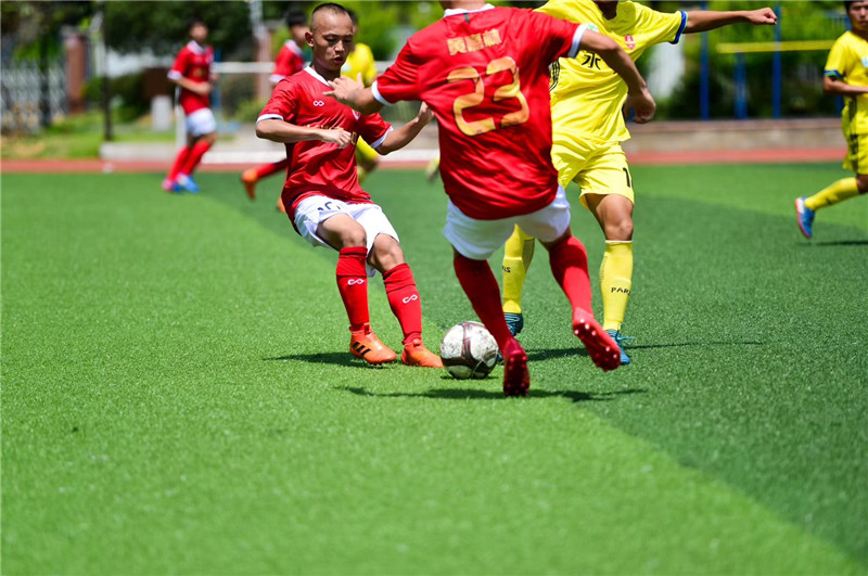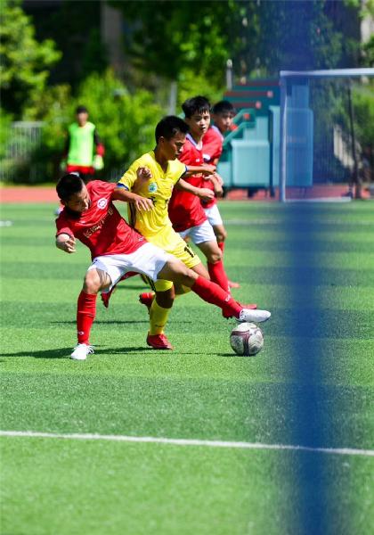 三天里,每天四场比赛,上午8点开赛,下午19:20结束。从朝阳到日落,无论烈日还是风雨,赛场上的运动健儿们挥洒汗水,奋力争先。边线传球,正面撞截,交叉换位,临门射球等精彩赛事引得全场队员和球迷血脉喷张、激动不已。