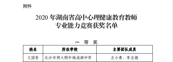 喜报:文国香老师获2020年湖南省高中心理健康教育教师专业能力竞赛省一等奖第一名