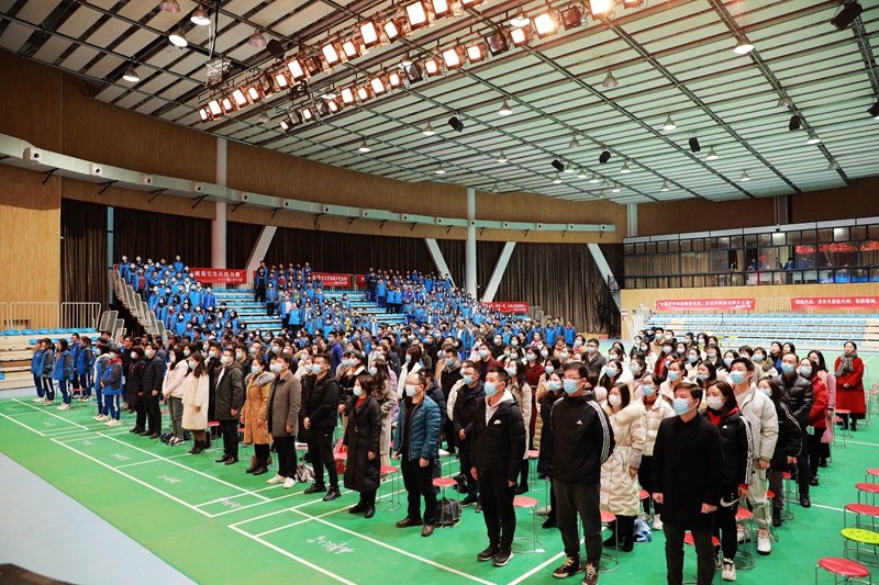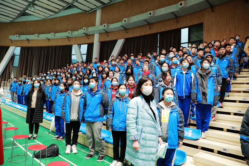 国歌响起,国旗飘扬,全体师生面向国旗,行注目礼,共同唱响国歌,在国歌声中感受英雄的力量,在国歌声中感受伟大祖国的繁荣昌盛。聚彩彩票以“青春献礼建党百年,奋斗绽放人生芳华”为主题,在体艺馆举行2021年春季开学典礼。开学典礼由副校长张志主持。高一年级学生和全体教职工在体艺馆参加现场典礼活动,其它年级学生在教室观看典礼直播。
