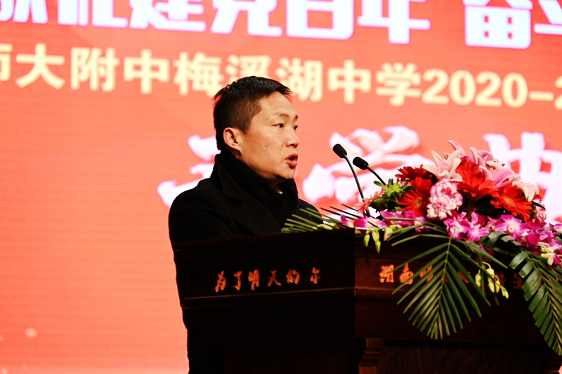 首先,校长张迪平发表新学期致辞。他回顾了学校在不平凡的2020年取得的骄人成绩。面对疫情考验,我们众志成城、逆行出征、共克时艰,过程艰难曲折,结果精彩圆满。 2020年,我校高考、中考全面丰收,获得社会各界普遍赞誉;我校创新拔尖人才培养成绩卓越;学校坚持五育并举,学生素养全面提升。一花独放不是春,百花齐放春满园。2020年,学校其它工作也成绩斐然。