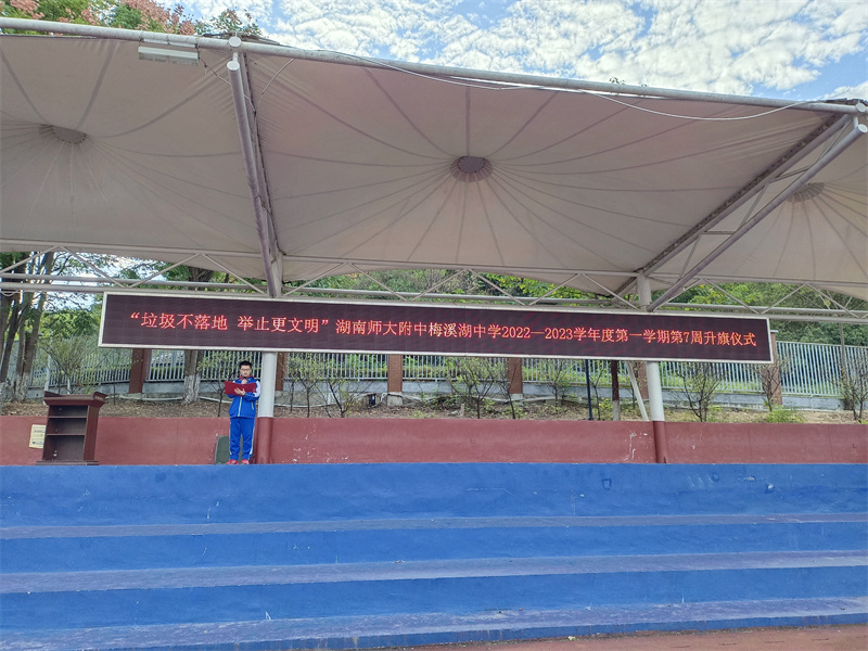 10月10日上午,“垃圾不落地 举止更文明”主题周会在我校田径场举行,全校师生参加了本次升旗仪式。