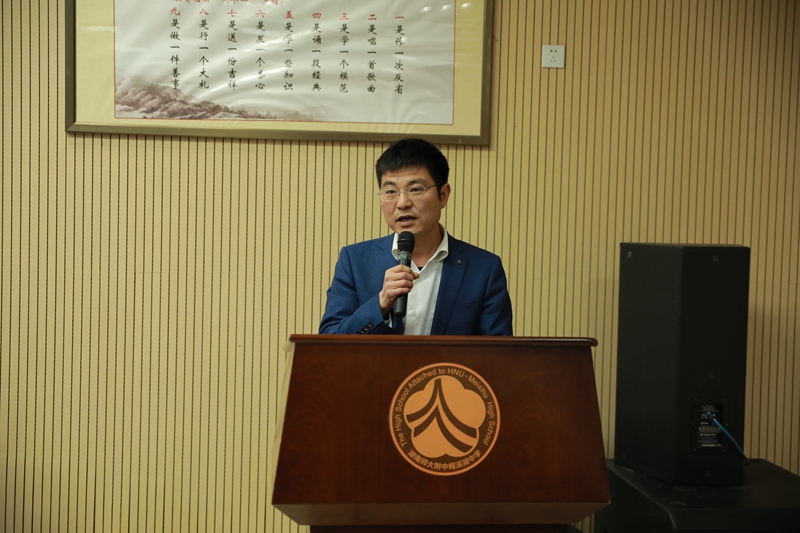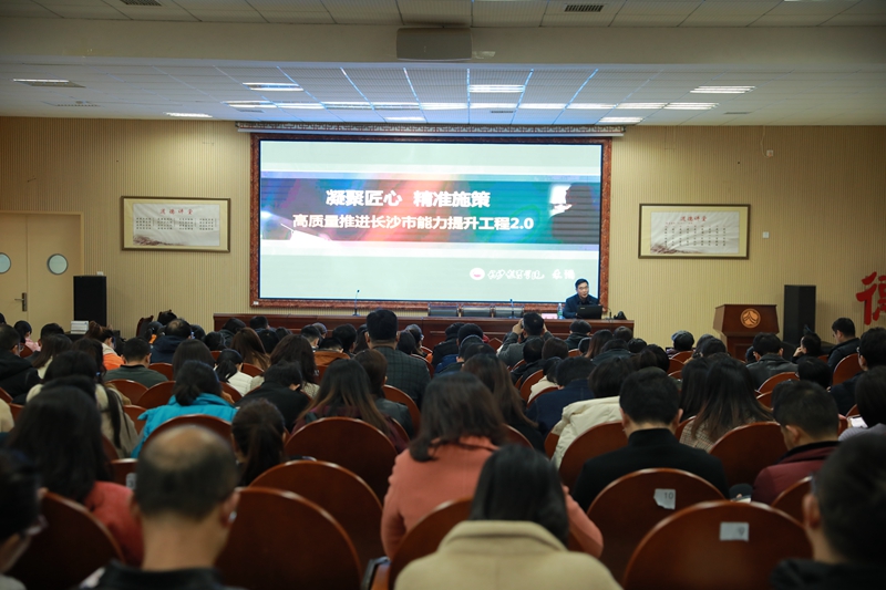 朱涌以《凝聚匠心 精准施策——高质量推进长沙市能力提升工程2.0》为题做了讲座。朱涌指出能力提升工程2.0目标是全面促进信息技术与教育教学融合创新发展,实现校长信息化领导力、培训团队信息化指导能力、教师信息化教学能力的提升。他重点介绍了推进能力提升工程2.0的基本原则,教师任务,学校任务,进度安排和理解能力点。他希望全体教师形成“校长负责、骨干引领、学科联动、团队互动、整体提升”的研修共同体,做到人人过关。