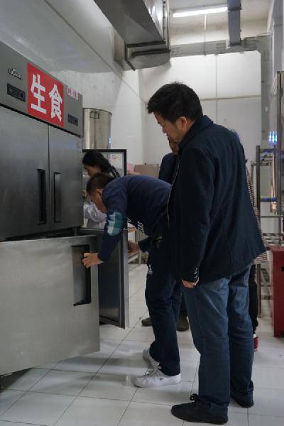 检查组一行先后深入食堂、面包房和超市等处了解食品原料采购、环境卫生、餐具消毒、食品卫生管理的情况。每到一处,检查组都认真听取负责人对食品卫生管理情况的汇报,并深入原材料储藏间、食品加工操作间,重点对食堂的冻库、原材料仓库、留样冰箱等涉及到食品安全卫生的关键环节进行了细致的检查。