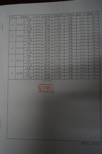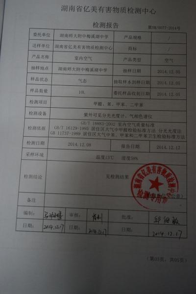 我校室内空气质量检测报告