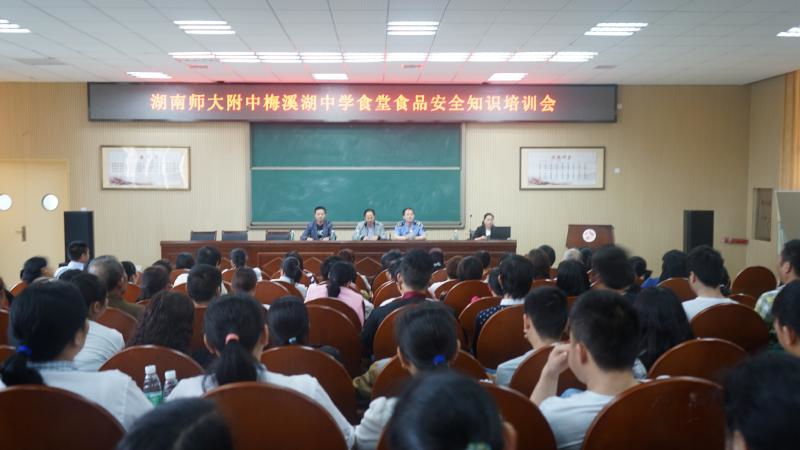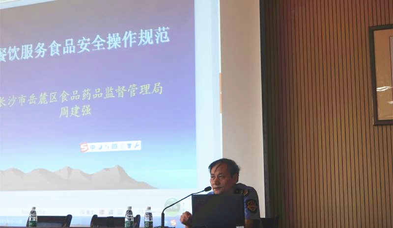 5月27日下午,我校食堂食品安全知识培训会在教学楼三楼道德讲堂召开。本次培训特邀请了长沙市岳麓区食品药品监督管理局食品安全监管科副科长周建强作专题讲座。岳麓区梅溪湖食品药品监督所所长周芳、我校副校长胡惠出席会议。学校食堂和所有门店的员工参加培训。