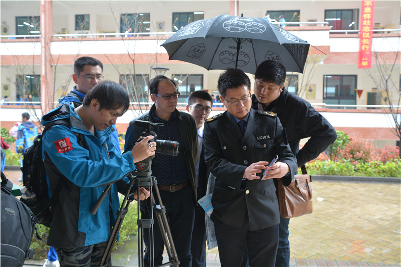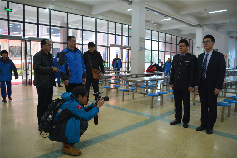 2017年是长沙市创建全国食品安全示范城市之年,长沙市食品药品监督管理局、长沙市教育局均推选我校为“创建全国食品安全示范城市宣传片”的主要拍摄单位。3月24日,长沙市食药局消费安全监管处处长戴理文率政法频道记者来校现场拍摄,我校副校长胡惠,保卫处主任胡海军,总务处副主任彭伟,少年大队辅导员郭金石陪同拍摄,且郭金石被选为该片的主要宣传人物之一。