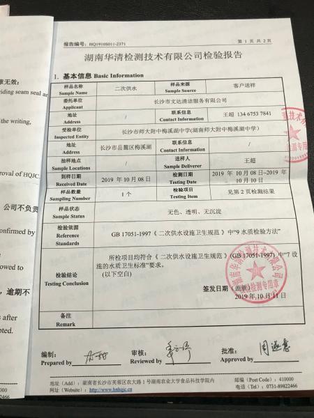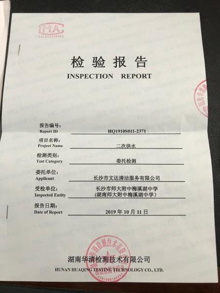 2019年学校二次供水检测报告